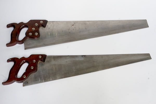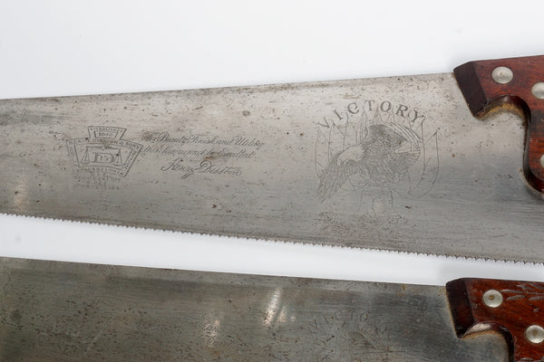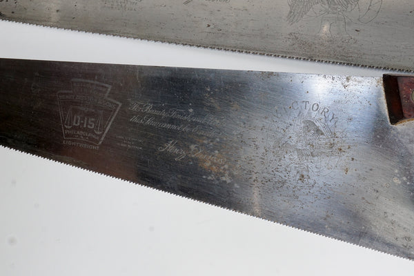 Found together. The larger has the June 23rd 1874 patent date in the bold clear etched logo and is shiny and sharp with a partial wheat sheaf rosewood handle. The 11 point has "LIGHTWEIGHT" in the clear etch and a full wheat sheaf pattern in the rosewood handle. Both handles are in very fine condition noting the lower tip on the lightweight lightweight must have sheared at some point and was immediately glued back on as the break is almost invisible. 100% uncleaned as found. Exceptional.