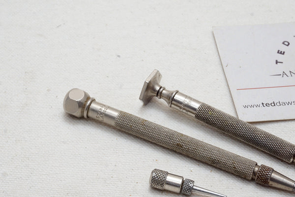 Good pair of quality Starrett. Awl has interchangeable tips.