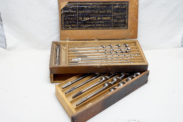 EARLY IRWIN AUGER BIT SET IN ORIGINAL BOX - 1/4" ~ 1" - PATENT 1884