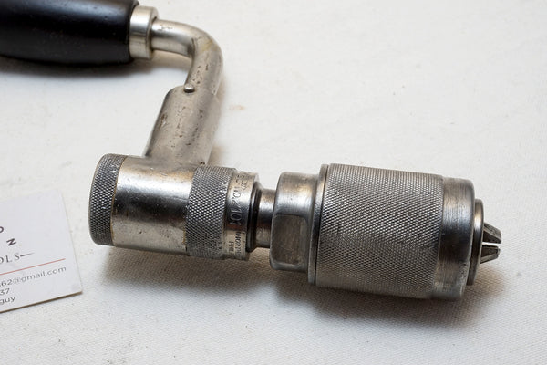 Considered the finest brace ever made. Less common 8" size. Excellent clean condition 100% as found. Stamped with the patent date, North Bros and other info on the chuck collar. Will hold both square shank and round bits. Ball bearing construction. 'YANKEE' on the head.