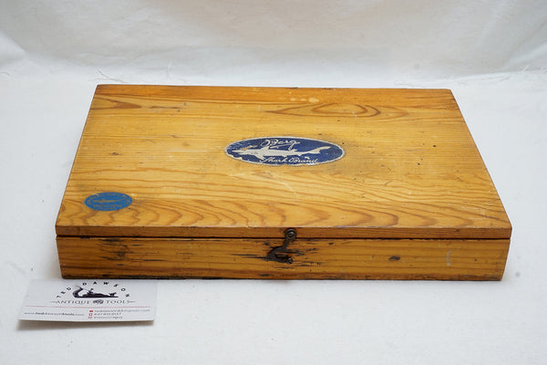 1/4", 3/8", 1/2", 3/4", 1" and 1 1/4". Berg's are considered amongst the finest chisels ever made. Handles excellent with good labels. 1 1/4" handle is rough on top. Good clean steel with no pitting. The box has two labels on top and near full end label.