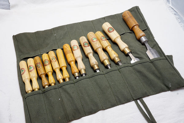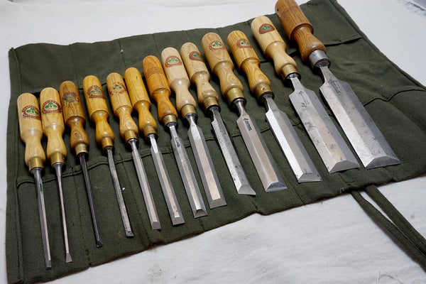 UNHEARD OF SET OF 13 MARPLES BEVEL EDGE CHISELS IN CANVAS ROLL
