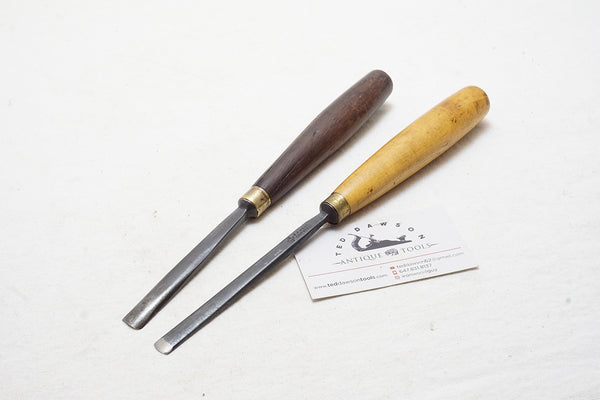 7/16" is a No 3 sweep and the other is about a No 5. One marked SJ ADDIS 20 GRAVEL LANE. Both Addis and in clean working condition.