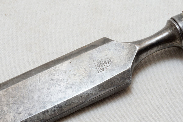 Very good condition. I cannot quite make out the maker stamp but the chisel is nearly identical to Swedish Eskilstuna chisels. 12 1/4" long.