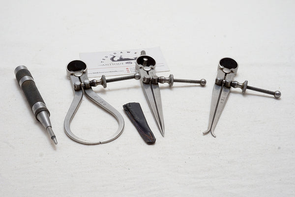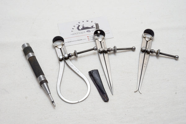 SET OF 3 STARRETT 5" INSIDE & OUTSIDE CALIPERS, DIVIDER, CENTER PUNCH