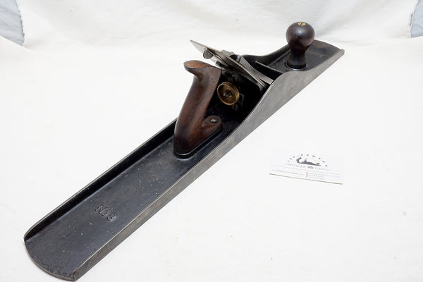 Beautiful plane with beautiful rosewood. 95% japanning. Will glow with a polish. Stylized 'J.F.' punched on both sides. Appears little used with factory milling marks highly visible on all sides.