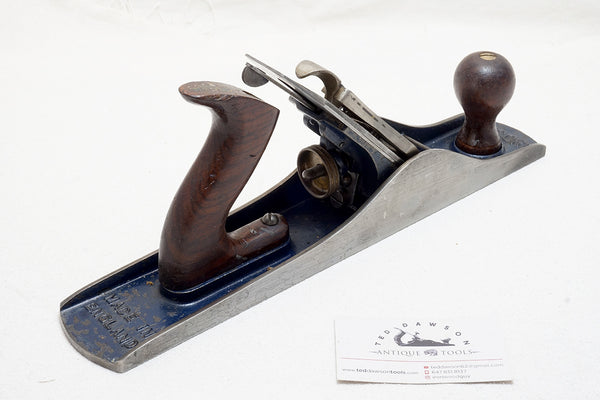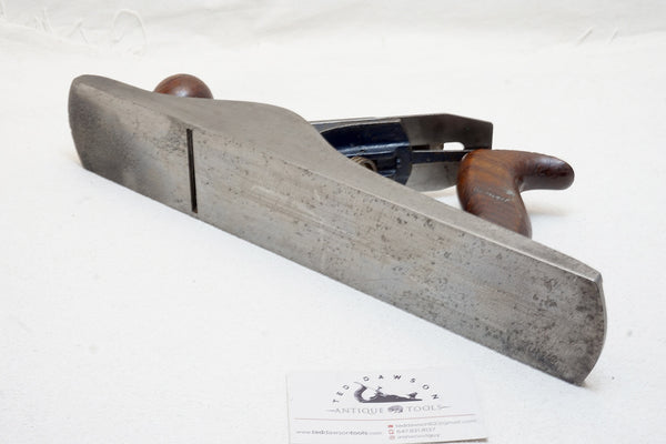 Great uncleaned as found condition. Will glow with a light cleaning. Heavy Record casting. Decal partially intact on the handle. The Stay Set series allowed for easy tool sharpening without having to unscrew the cap iron. Very tight hairline crack in the handle near the bottom.