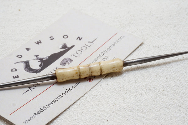 Beautiful bone handle. Exquisite early tool. Just under 6" long.