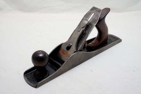 Heavy Canadian casting. 98% shiny japanning. Great overall condition and little used but with a glued handle and a few spots of pitting on the sole. A clean excellent working plane.