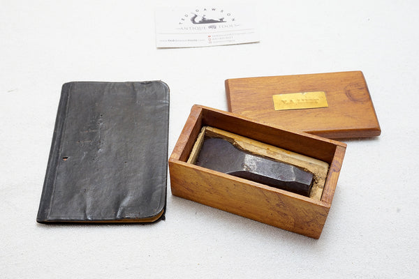 Both owned by Varanes A. Libby! The punch is in a purpose built box with his name stamped on a brass plate on top. The booklet is from 1912 and has the seal stamped in it from the UNITED BROTHERHOOD OF CARPENTERS AND JOINERS OF AMERICA LOCAL 1298 from Andover Massachusetts.