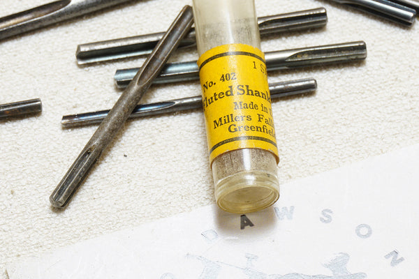 One of Millers Falls more unusual offerings was the Buck Rogers line of tools and that included this screwdriver. Not common, and complete with 9 bits and original bit tube. Excellent condition. Box was covered in brown paper decades ago. Could possibly be carefully removed. I can see the red MF paper underneath.