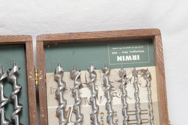 Manufactured by Irwin. Complete set of bits #s 4-16 IOB. Extra fine, uncleaned as found condition.