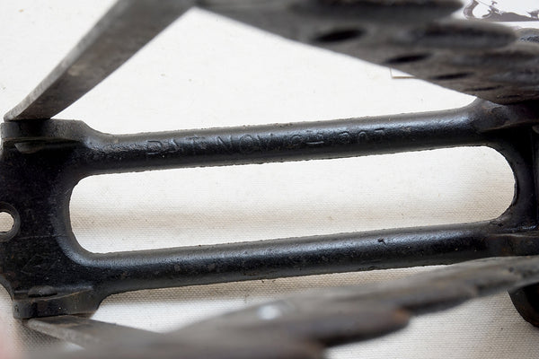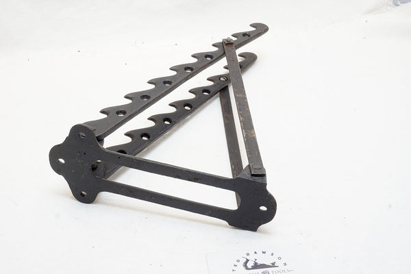 PAT NOV 19TH 1907 tool rack. Excellent condition with 80% original black paint. Adjustable in terms of setting the slope angle from 90 degrees downward. 'T' trademark in a diamond. Canadian patent by Harry Frederick Moulden. They extend off the wall 12 3/4".