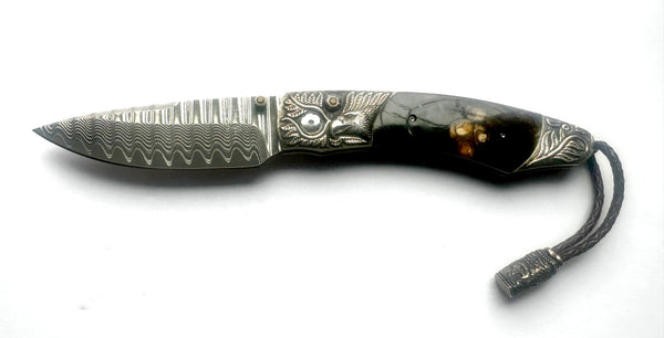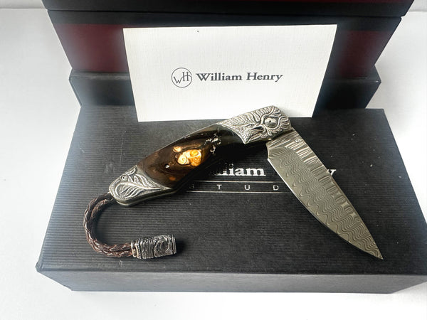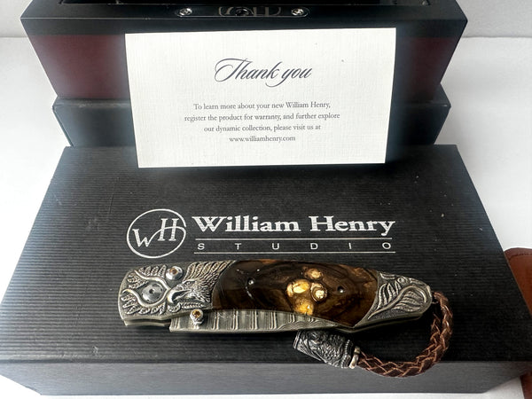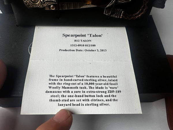 Highly collectible Spearpoint 'Talon' folding knife, Model B12 TALON, by William Henry. Wooly Mammoth Tusk scales! Also has an eagle motif.